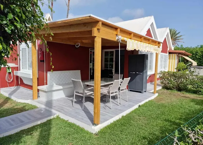 La Modern Garden Chalet 3 BR by Canarias prime homes Maspalomas, situada a 550 metros de Holidayworld Maspalomas Center, cuenta con una piscina que contiene un patio. Esta villa, que ofrece a los huéspedes un patio, está situada a 25 minutos a pie de la Playa del Inglés.